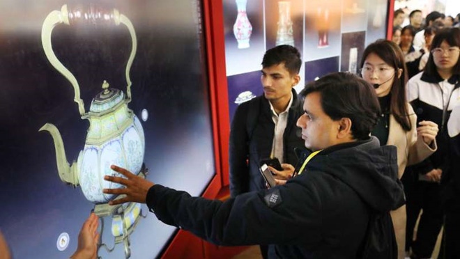 2017年10月20日,外交部組織50多名外國記者在北京展覽館參觀“砥礪奮進的五年”大型成就展。