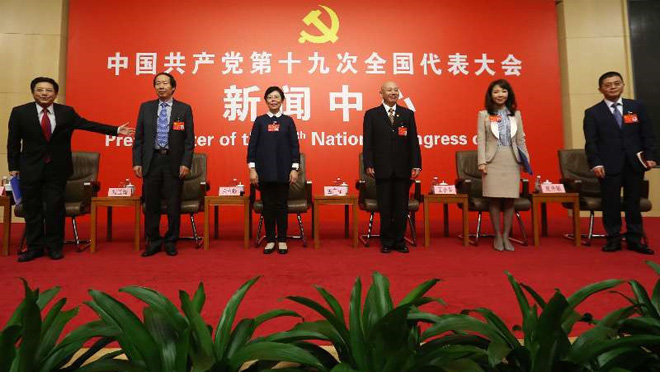 10月18日,十九大部分代表團討論向中外記者開放。