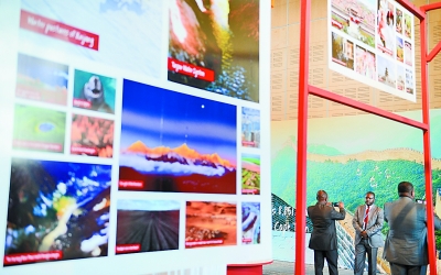 圖為12月1日,在南非開普敦,中非媒體領(lǐng)袖峰會的嘉賓在“中國風(fēng)”展覽上拍照留影。為期一天的中非媒體領(lǐng)袖峰會當(dāng)天在南非開普敦國際會議中心舉行,來自中國18家媒體與來自非洲47個國家120家媒體的約130名負(fù)責(zé)人出席會議,就深化中非媒體交流合作、開創(chuàng)合作共贏新時代等進(jìn)行研討。新華社記者翟健嵐攝
