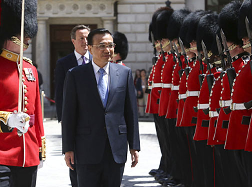 2014年6月,李克強總理正式訪英并舉行中英總理年度會晤,會見了伊麗莎白二世女王,同卡梅倫首相舉行會談,雙方發表《中華人民共和國政府和大不列顛及北愛爾蘭聯合王國政府聯合聲明》。