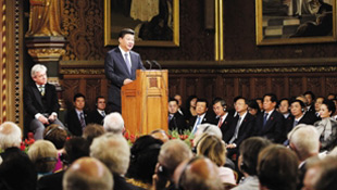 10月20日,中國國家主席習近平訪英期間在威斯敏斯特英國議會大廈發(fā)表演講,這是中國領(lǐng)導(dǎo)人第一次在英國議會發(fā)表演講。演講地設(shè)在英國議會大廈皇家畫廊,凸顯出此次演講的分量。這里是最金碧輝煌的大廳之一,只有舉辦重大活動時才會啟用。