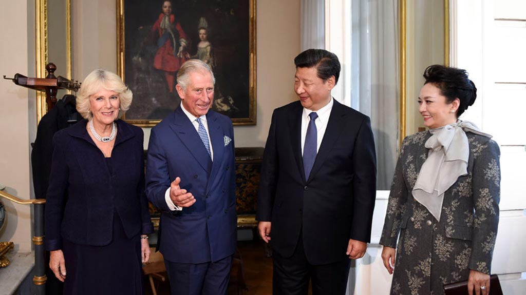 10月20日,國(guó)家主席習(xí)近平和夫人彭麗媛在倫敦會(huì)見(jiàn)英國(guó)查爾斯王儲(chǔ)夫婦。