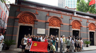 石庫(kù)門(mén)廳堂正中是一張長(zhǎng)方形餐桌,10余只圓凳圍繞餐桌依次擺放,玻璃花瓶、白底彩繪茶具、電燈等也均以原貌陳列。石庫(kù)門(mén)廳堂正中是一張長(zhǎng)方形餐桌,10余只圓凳圍繞餐桌依次擺放,玻璃花瓶、白底彩繪茶具、電燈等也均以原貌陳列。