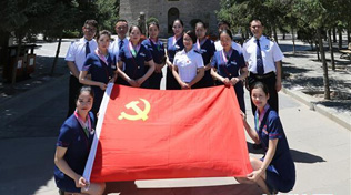 西安鐵路局西安客運(yùn)段動(dòng)車(chē)二隊(duì)黨總支在寶塔山下舉行“緬懷革命先烈,重溫入黨誓詞”主題活動(dòng)(6月16日攝)。如今的延安,已難見(jiàn)黃土高坡沙塵飛揚(yáng),通過(guò)大力退耕綠化,加強(qiáng)污染防治,實(shí)施延河治理,延安展現(xiàn)出了地綠、天藍(lán)、水清的優(yōu)美新貌。