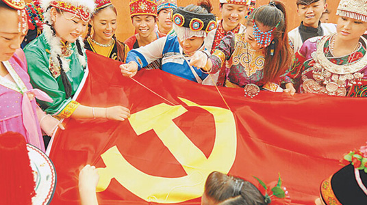 6月27日,為紀(jì)念建黨95周年,深入落實(shí)“兩學(xué)一做”學(xué)習(xí)教育,北京市朝陽(yáng)區(qū)亞運(yùn)村街道舉辦“我是黨員我來(lái)做”主題黨日活動(dòng)。機(jī)關(guān)黨員干部、社區(qū)居民老黨員深入交流黨章學(xué)習(xí)心得,來(lái)自街道轄區(qū)中華民族博物院的少數(shù)民族職工、入黨積極分子圍在一起繡黨旗,為黨的95歲生日獻(xiàn)禮。