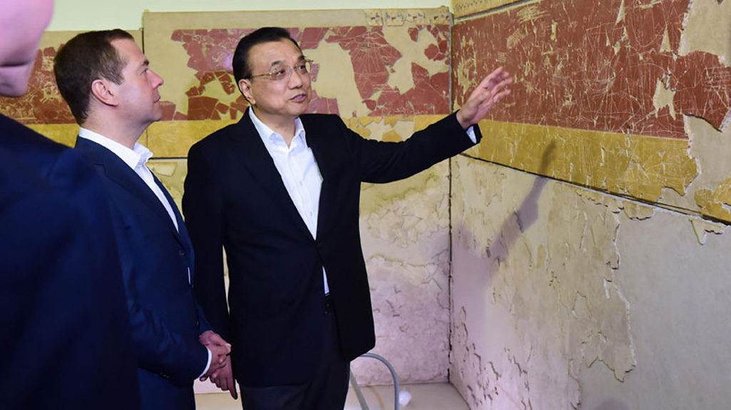 國務院總理李克強當?shù)貢r間7日下午在圣彼得堡康斯坦丁宮同俄羅斯總理梅德韋杰夫共同主持中俄總理第二十一次定期會晤。中俄人文合作委員會中方主席、國務院副總理劉延東,中俄總理定期會晤委員會中方主席、國務院副總理汪洋,以及相關機制俄方負責人第一副總理舒瓦洛夫、副總理戈洛杰茨、德沃爾科維奇、羅戈津和特魯特涅夫等出席會晤。