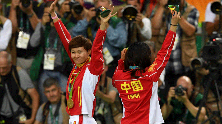 里約奧運會場地自行車女子團體競速賽決賽中,中國組合宮金杰/鐘天使以32秒107的成績,擊敗俄羅斯組合獲得冠軍。