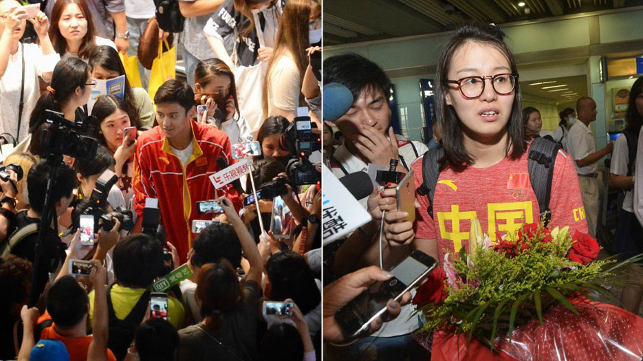 8月16日,里約奧運會中國游泳隊完成比賽回國抵達了北京首都國際機場,大量粉絲在機場熱情迎接。面對大批粉絲,寧澤濤顯得很淡定,但是新晉“網紅”傅園慧好像被驚到了......