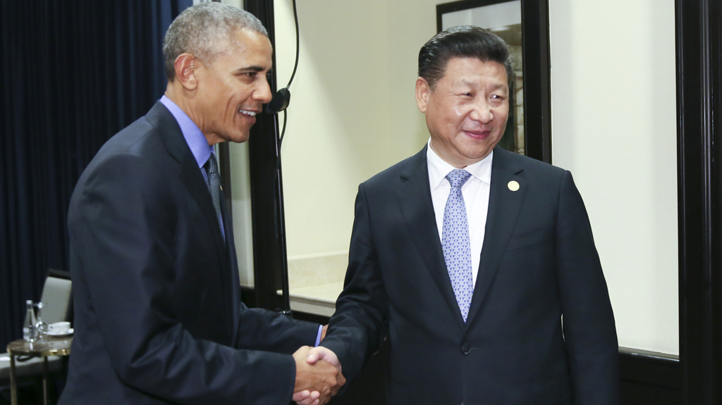 19日,國家主席習(xí)近平在利馬會見美國總統(tǒng)奧巴馬。兩國元首回顧總結(jié)3年多來中美關(guān)系發(fā)展經(jīng)驗,一致同意確保中美關(guān)系繼續(xù)沿著正確軌道健康穩(wěn)定向前發(fā)展。
