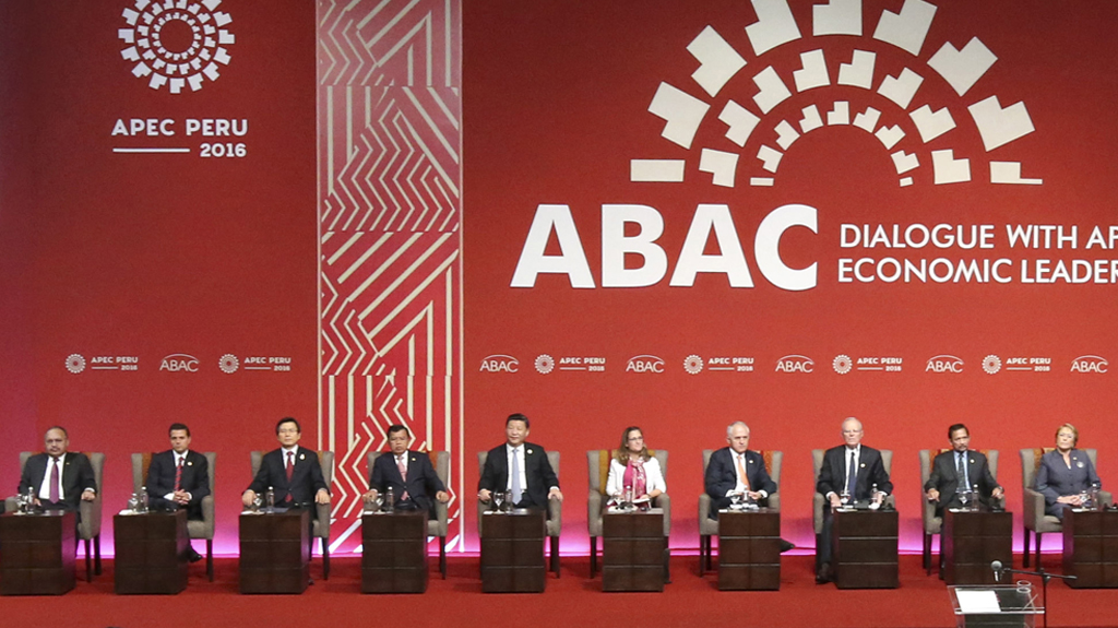 11月19日,國家主席習(xí)近平在利馬出席亞太經(jīng)合組織領(lǐng)導(dǎo)人同工商咨詢理事會代表對話會,同代表們就亞太自由貿(mào)易區(qū)和亞太經(jīng)濟一體化、互聯(lián)互通、中國經(jīng)濟形勢和政策等議題交換看法。
