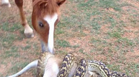 不忍直視!澳巨蟒吞食沙袋鼠驚呆“馬觀眾”