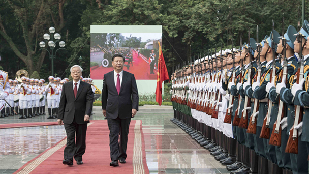 中共中央總書記、國(guó)家主席習(xí)近平12日在河內(nèi)越共中央駐地同越共中央總書記阮富仲舉行會(huì)談。雙方積極評(píng)價(jià)彼此發(fā)展成就,一致同意繼承、維護(hù)、發(fā)揚(yáng)好中越傳統(tǒng)友誼,相互堅(jiān)定奉行友好政策,把兩國(guó)全面戰(zhàn)略合作發(fā)展得越來越好,給兩國(guó)和兩國(guó)人民帶來更多切實(shí)利益。