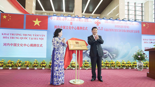 中共中央總書記、國(guó)家主席習(xí)近平12日在河內(nèi)出席越中友誼宮落成移交儀式暨河內(nèi)中國(guó)文化中心揭牌儀式。