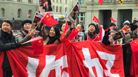 2017年1月15日,瑞士伯爾尼,當地華人華僑,在路旁迎接中國國家主席習近平的到來