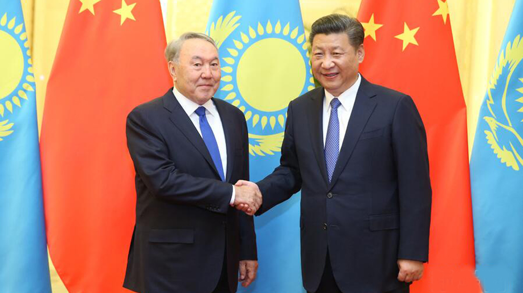 6月8日,正在哈薩克斯坦訪問的國家主席習近平在哈薩克斯坦總統納扎爾巴耶夫陪同下,參觀阿斯塔納專項世博會中國國家館,并共同出席中哈亞歐跨境運輸視頻連線儀式。