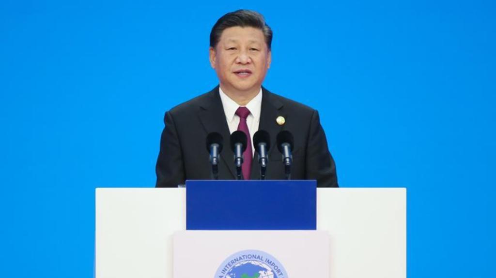 11月5日上午,上海國家會展中心,習近平主席在首屆中國國際進口博覽會開幕式上發表主旨演講。包括多個國家和地區領導人、國際組織負責人在內的1500多名與會嘉賓現場聆聽。