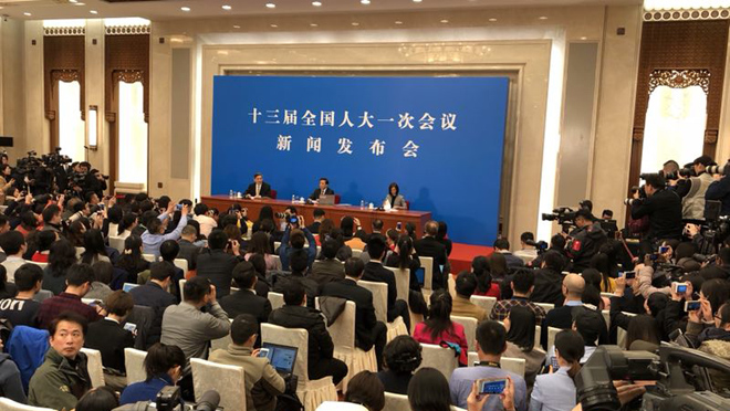 3月12日,十三屆全國人大一次會議新聞中心舉行記者會,邀請十二屆全國人大財經委副主任委員尹中卿、教科文衛委副主任委員吳恒、環資委副主任委員袁駟、內司委委員鄭功成,全國人大常委會預算工委副主任劉修文、常委會辦公廳秘書局巡視員傅文杰就“人大監督工作”相關問題回答中外記者提問。