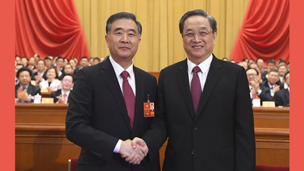 3月14日,全國政協十三屆一次會議在北京人民大會堂舉行第四次全體會議,選舉政協第十三屆全國委員會主席、副主席、秘書長和常務委員。當會議主持人宣布汪洋當選政協第十三屆全國委員會主席后,俞正聲與汪洋熱烈握手,表示祝賀。