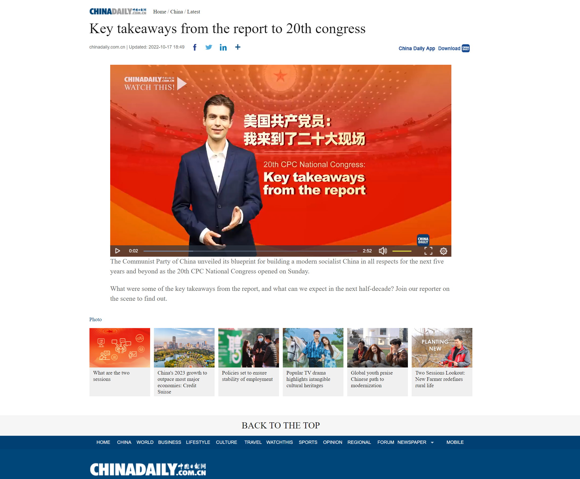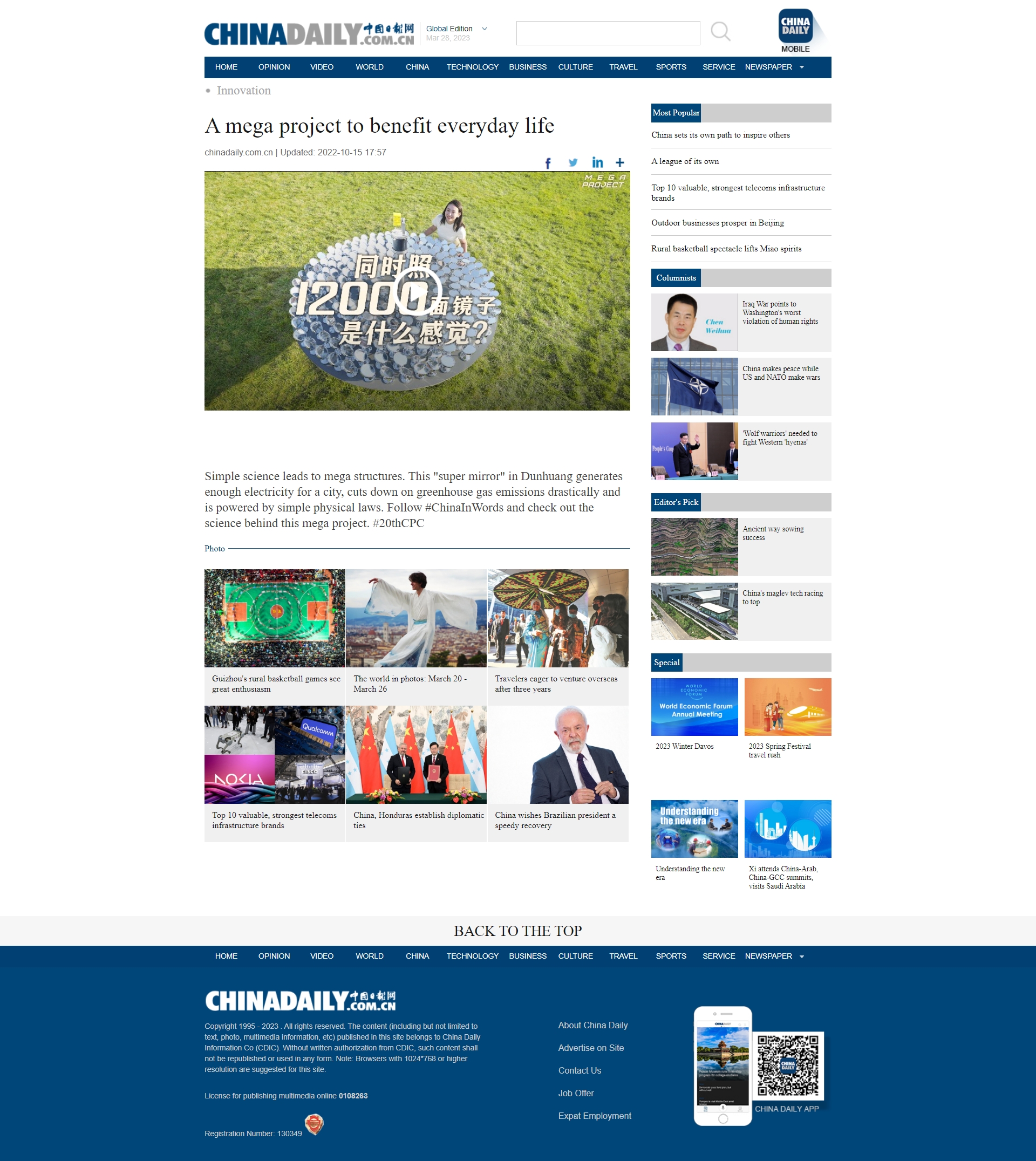 根據中國記協《中國新聞獎評選辦法》和中國記協新媒體專業委員會《關于開展第33屆中國新聞獎融合報道、應用創新和新媒體新聞專欄作品專項初評工作的通知》相關要求,現對中國日報社報送的5件參評作品進行公示,歡迎監督、評議。公示期為2023年3月28日至4月3日。如有不同意見,可通過電話或電子郵件等方式發表評議意見,逾期不再受理。