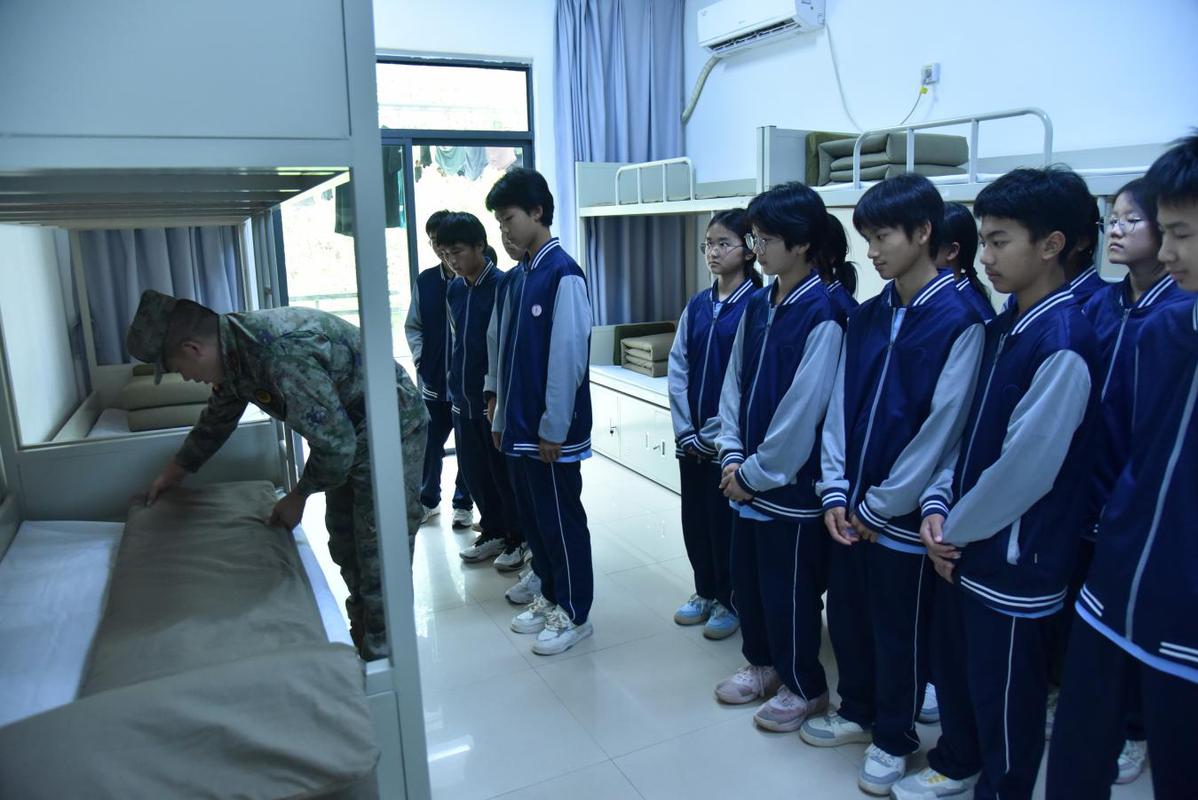 一進(jìn)入營(yíng)區(qū),參訓(xùn)民兵正在進(jìn)行隊(duì)列示范演示、擒敵拳表演,還有戰(zhàn)術(shù)基礎(chǔ)訓(xùn)練和鏗鏘有力的口號(hào),看到精彩的擒敵拳招式和整齊劃一、干凈利落的隊(duì)列動(dòng)作,同學(xué)們驚嘆不已。房間里,看著方正的被子、平整的床單、排成一條線的洗漱用具,大家不由地伸手捏一捏被子、摸一摸、瞄一瞄。“三分疊,七分整……”隨著參訓(xùn)人員的深入講解,“八一愛民小學(xué)”六年級(jí)的學(xué)生們躍躍欲試,都想把一床床被子變成“豆腐塊”,一場(chǎng)趣味盎然的疊被子比賽開始了……