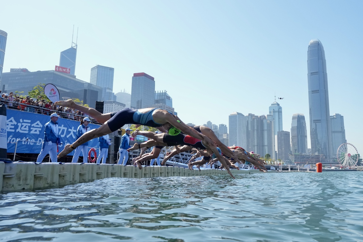 中國日報網11月17日電(記者 魏曉昊)2025年11月16日,第十五屆全運會鐵人三項混合接力比賽在香港中環海濱及維多利亞港舉行。山東隊在最后時刻反超香港隊,以11秒優勢將金牌收入囊中。