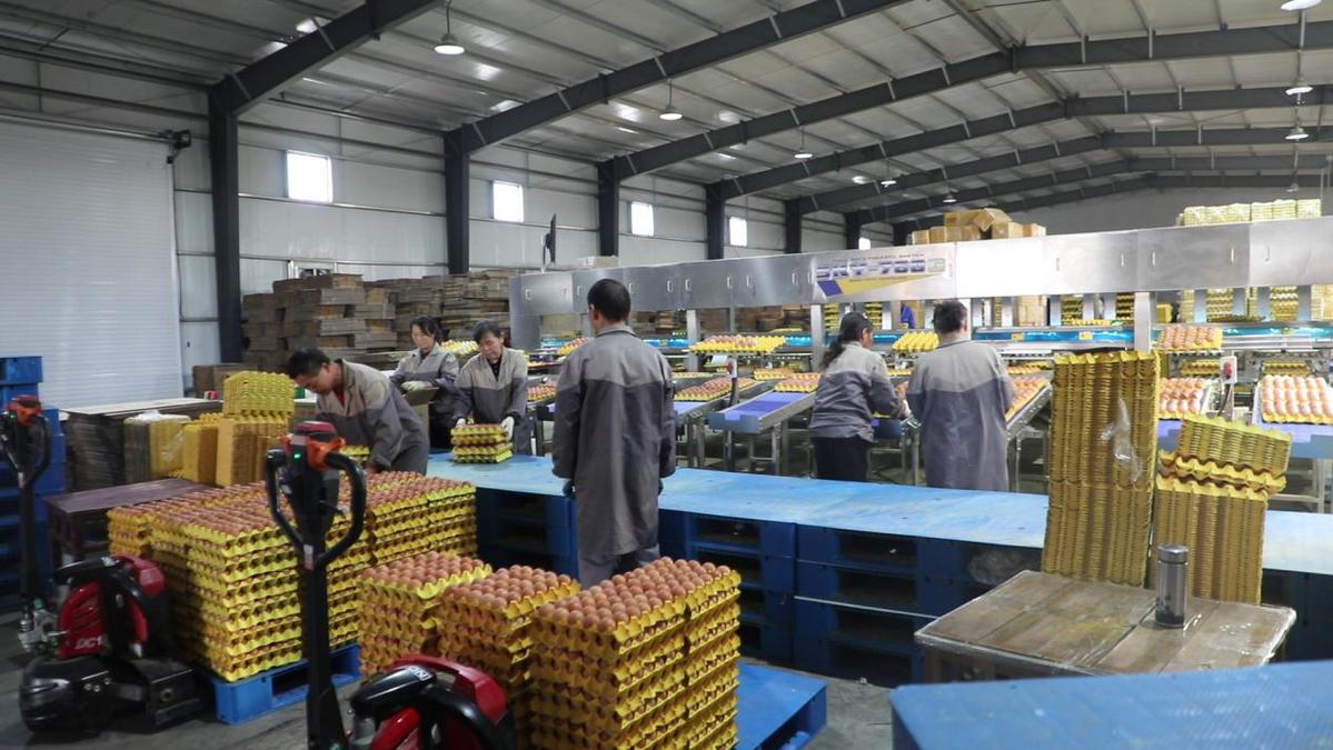 63歲的張莊鄉村民王樹桂戴著手套,熟練地將裝托的鮮蛋規整裝箱,“以前常年在外打工,孩子老人都顧不上,現在在家門口上班,每月工資3000多塊,工作輕松又穩定,太知足了!”