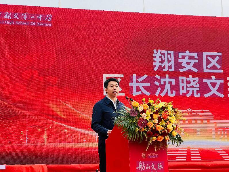翔安區委副書記,區人民政府黨組書記、區長沈曉文在致辭中說:“翔安一中風雨兼程、砥礪奮斗的80年,見證了翔安從無到有、蝶變發展的壯闊歷程。”他表示,80年來,翔安區也從“風頭水尾,一窮二白”,發展成如今“風勁揚帆,一往無前”的現代化產業新城。而城市的發展,“關鍵靠人才,基礎在教育。”區委區政府也將堅持教育優先的發展理念,最優資源投教育。
