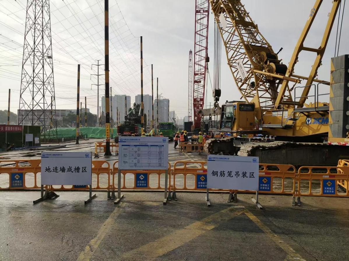 該站位于拱康路與康橋路交叉口,施工環(huán)境極為復(fù)雜。站點(diǎn)周邊密布DN820高壓燃?xì)夤艿馈?20kV高壓輸電線、半山電廠取水管等11類關(guān)鍵管線,給安全管理帶來巨大挑戰(zhàn)。其中,65幅地連墻需近距離并行高壓燃?xì)忾L輸管道、71幅位于220kV高壓線保護(hù)范圍內(nèi)施工,兩種工況均為全國首例,安全風(fēng)險(xiǎn)極高,技術(shù)要求苛刻,對(duì)項(xiàng)目安全管理和施工帶了巨大的挑戰(zhàn)和壓力。