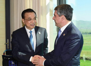 國務院總理李克強16日上午在烏蘭巴托會見保加利亞總統普列夫內利埃夫。