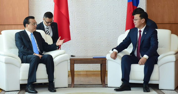 國務院總理李克強10日下午在大連國賓館會見來華出席2015年夏季達沃斯論壇的蒙古國總理賽汗比勒格。賽汗比勒格表示,蒙方重視中方開展兩國務實合作的倡議,期待加強雙邊政治、經貿關系,愿落實雙方共識,加快礦業、電力、鐵路運輸等領域的大項目合作。
