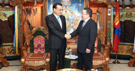 國務院總理李克強當地時間14日上午在烏蘭巴托國家宮會見蒙古國大呼拉爾主席恩赫包勒德。蒙新政府將保持對華政策的連續性和穩定性,本著發展兩國全面戰略伙伴關系的強烈意愿,加強各領域務實合作。