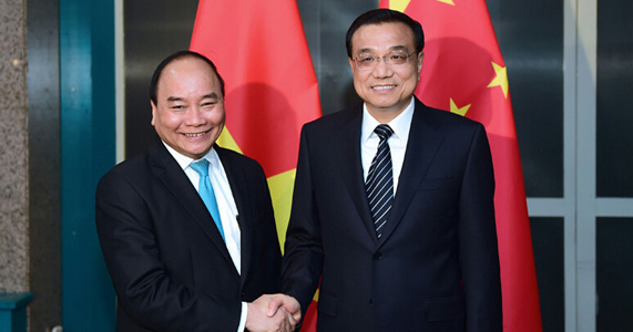 國務院總理李克強當地時間14日下午在烏蘭巴托下榻飯店會見越南總理阮春福。在談及南海問題時,李克強指出,關于所謂菲律賓南海仲裁案,中方不承認、不接受的立場是明確的。阮春福表示,越方尊重中方關于菲律賓南海仲裁案的立場,主張通過對話協商妥善解決爭端。