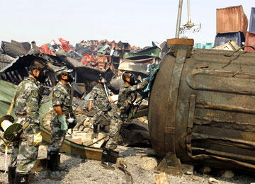 核生化救援隊(duì)進(jìn)入天津爆炸核心區(qū)開展檢測(cè)工作