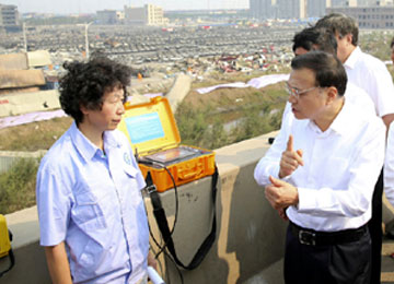 李克強(qiáng)總理16日下午在天津“8·12”瑞海公司危險(xiǎn)品倉庫特別重大火災(zāi)爆炸事故現(xiàn)場(chǎng)。