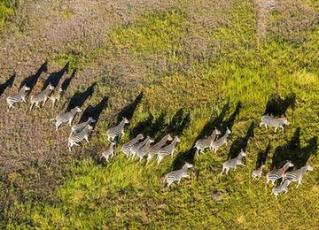 據(jù)英國《每日郵報(bào)》8月16日?qǐng)?bào)道,英國攝影師彼得·亞當(dāng)斯(Peter Adams)在博茨瓦納奧卡萬戈三角洲900米的高空航拍野生動(dòng)物景象,畫面壯觀令人驚嘆。56歲的彼得乘坐魯濱孫R44直升機(jī)飛至奧卡萬戈三角洲900米高空,打開艙門以求獲得更廣闊的拍攝角度,俯拍三角洲上綺麗的自然景象。