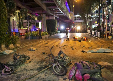 泰國曼谷爆炸現(xiàn)場(chǎng)滿地狼藉 警方封鎖現(xiàn)場(chǎng)