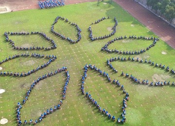 中國人民抗日戰爭暨世界反法西斯戰爭勝利70周年之際,今天上午,70對滬上情侶身著海軍服和護士服,相約上海歡樂谷,排成“70”字樣隊形,用浪漫擁吻,再現了1945年戰后紐約時代廣場的“世紀之吻”的經典畫面,用愛致敬和平,用歡樂慶祝抗戰勝利70周年。