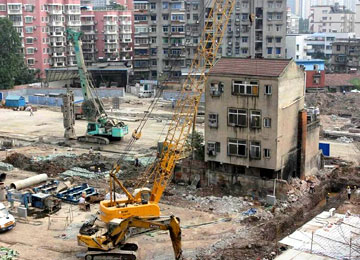 2015年8月26日消息,湖北武漢。在武昌區秦園路徐家棚地鐵站施工工地中間,有棟樓房還有人居住。負責此處施工的中鐵二局反映,因這棟房子遲遲未拆,導致地鐵站施工進度滯后。