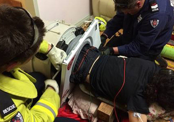 據英國《每日電訊報》19日報道,澳大利亞新南威爾士州發生一起男子被卡在洗衣機里長達三小時無法脫身的事件,趕往救援的消防隊員們稱他們之前從未見過這樣的事。 被困男子今年22歲,當時他的身體從腿到腰部都卡在了一個滾筒洗衣機里,救援人員花了超過一小時來將他從洗衣機里弄出來,因為實在卡得很緊,他們只能將洗衣機部件一一拆除。