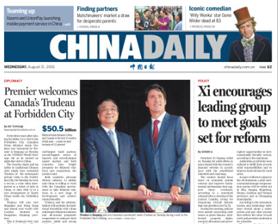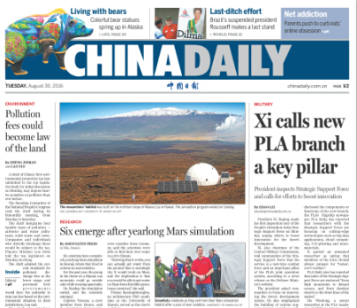 8月30日中國日報推薦:環(huán)保稅立法將助力環(huán)境保護(hù)