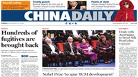 2015年諾貝爾生理學(xué)或醫(yī)學(xué)獎獲獎?wù)咄肋线希ㄖ校瑦蹱柼m科學(xué)家威廉?坎貝爾(左一)和日本科學(xué)家大村智(左二)及文學(xué)獎獲得者斯韋特蘭娜?阿列克西耶維奇(右二)于周四在斯德哥爾摩諾貝爾獎頒獎現(xiàn)場。