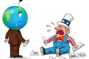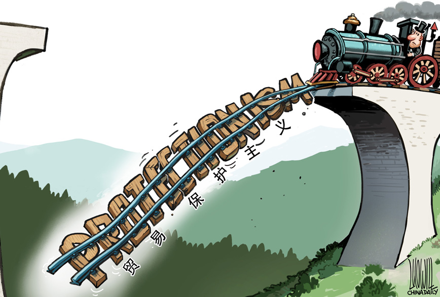 美國總統(tǒng)特朗普鼓吹“美國第一”的行為過于自私,實(shí)質(zhì)是為了本國利益而損害全球自由貿(mào)易。