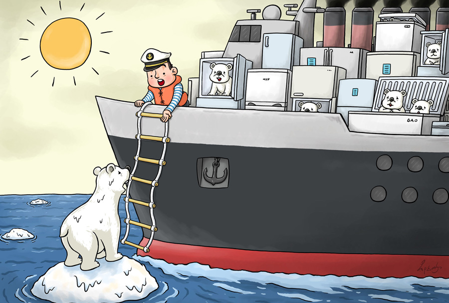 全球變暖如果持續下去,北極熊恐怕要在冰箱里求生存了。