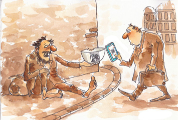 進入移動支付時代,連乞丐都用二維碼了。