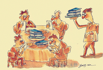 沉浸在手機中的人們忽略了精神食糧。