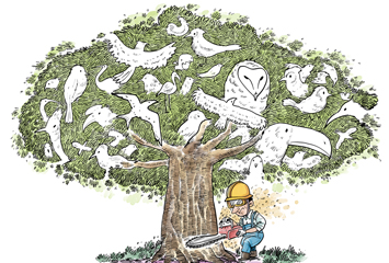 過度破壞森林將導致鳥巢數(shù)量劇減,鳥類繁衍愈發(fā)困難,從而使鳥類瀕臨滅絕。
