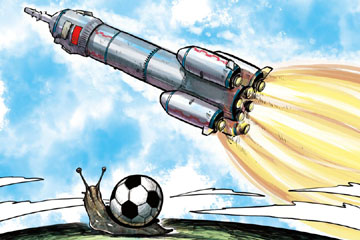 與航天工業相比,中國足球發展緩慢,幾乎是蝸速。