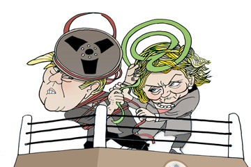 美國大選候選人特朗普與希拉里互相揪住小辮子,猛烈攻擊對方。