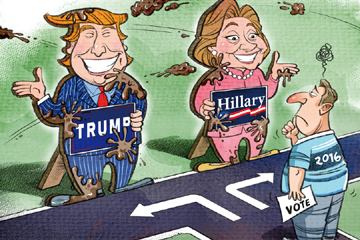 美國民主黨總統(tǒng)候選人希拉里和共和黨總統(tǒng)候選人特朗普皆丑聞纏身,美國選民今年將很難做出抉擇。