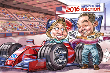 蒂姆·卡因?qū)⒆鳛橄@锏母?jìng)選搭檔加入她的團(tuán)隊(duì),與其“并肩作戰(zhàn)”,為希拉里的競(jìng)選之路出力。